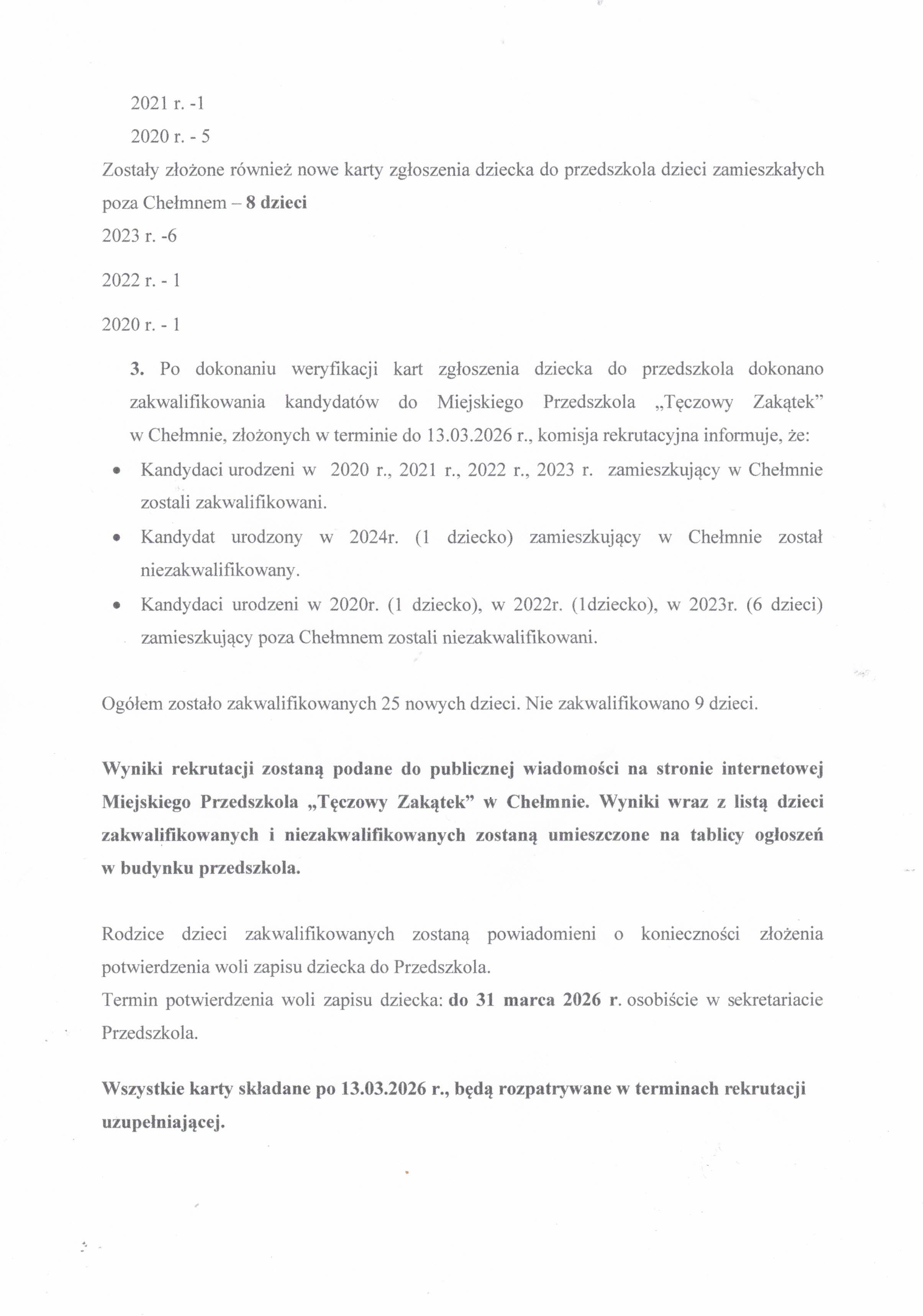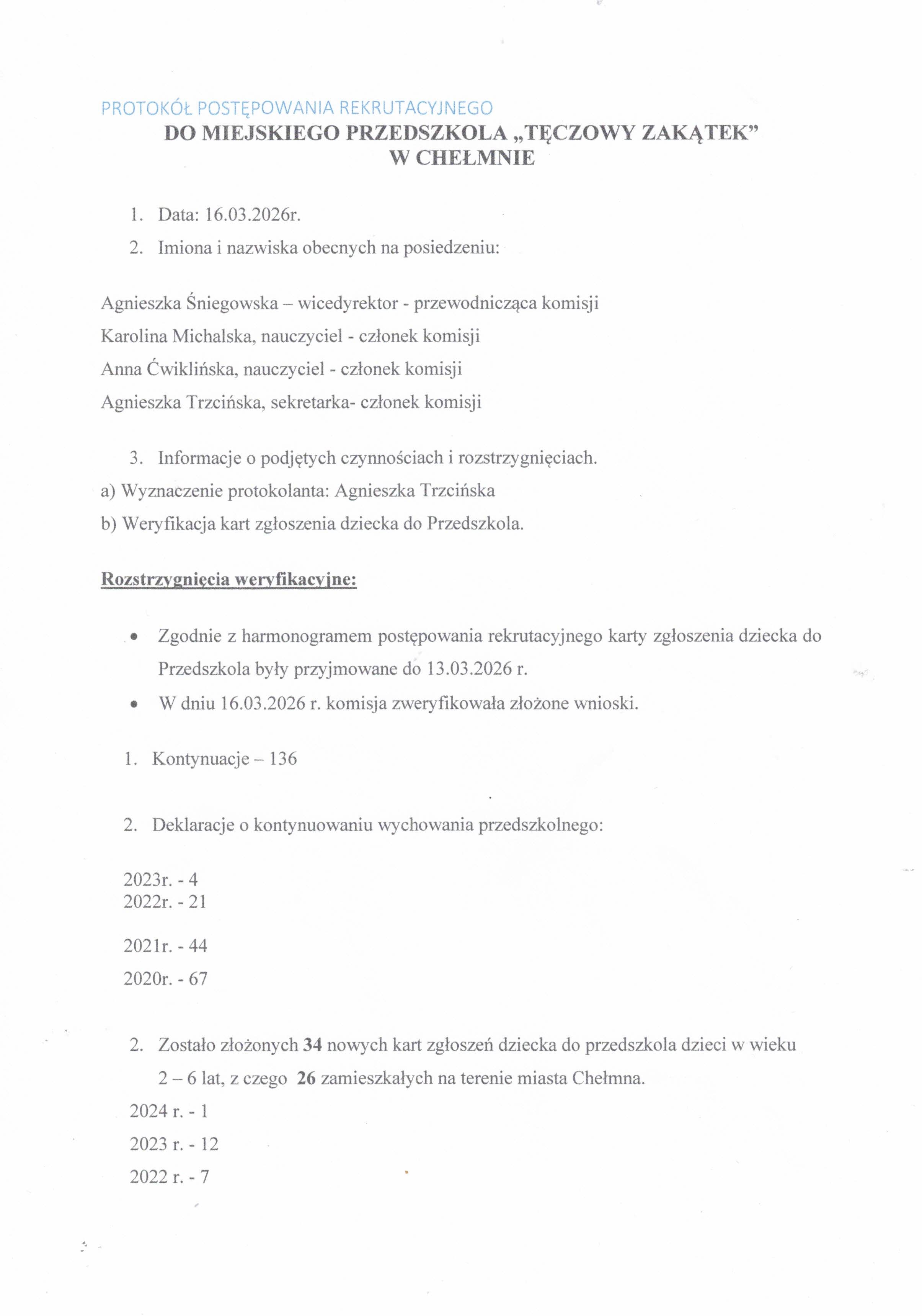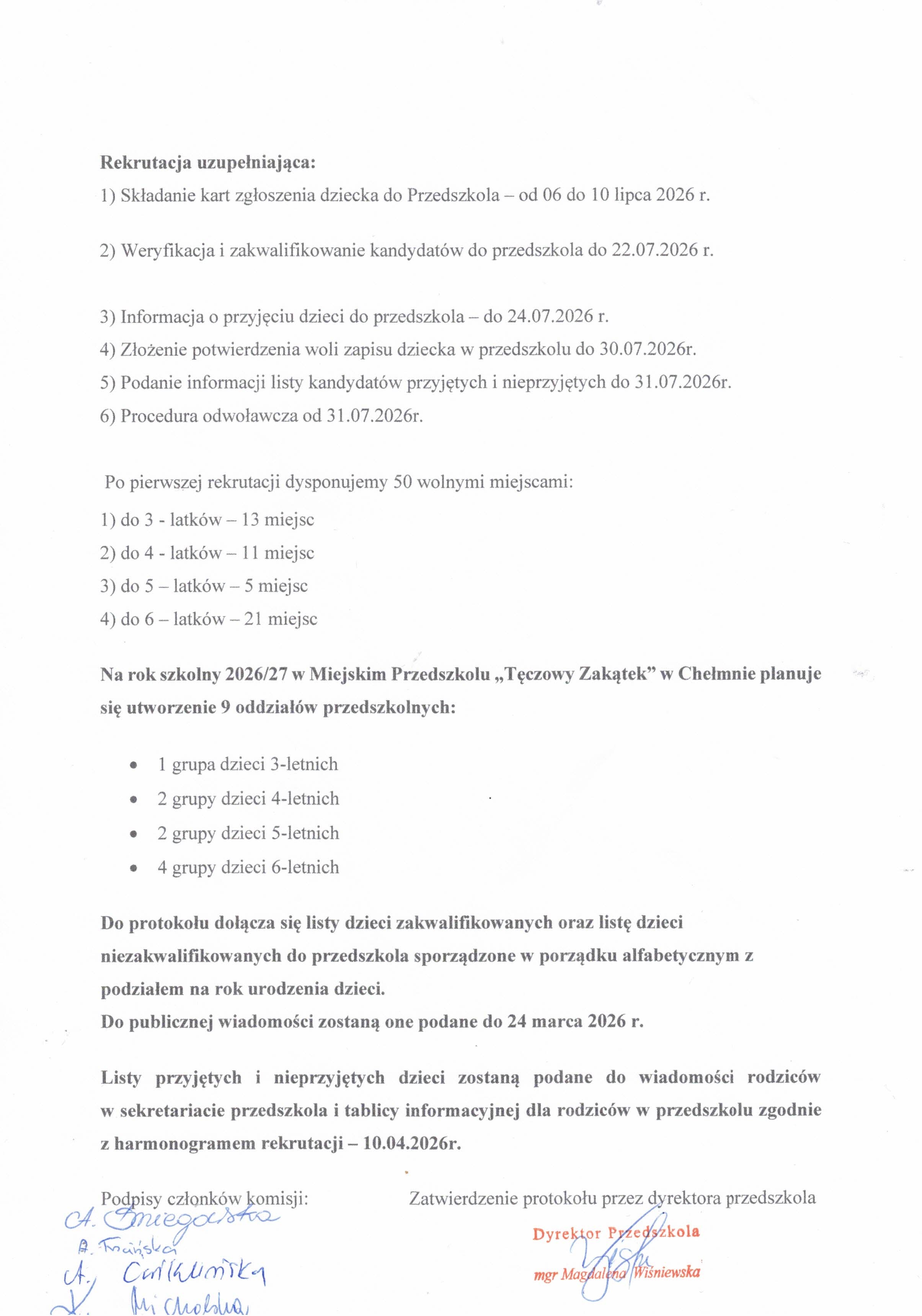 w sekretariacie przedszkola zgodnie z harmonogramem rekrutacji.